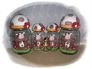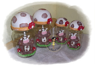 Estes potes eu fiz para colocar na minha cozinha, por que casa de ferreiro o espeto de pau né, eu não tinha um pote de mantimento, e olha que já fiz vários para encomendas, só que após conclui-los, kkkk da uma dó de usar, ta muito lindinho, kkkkkk nem eu me entendo....